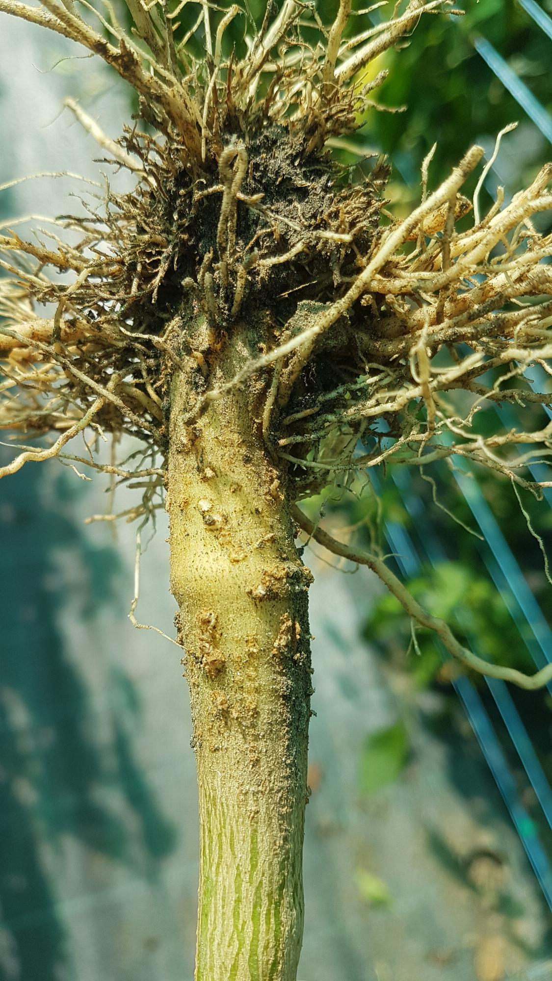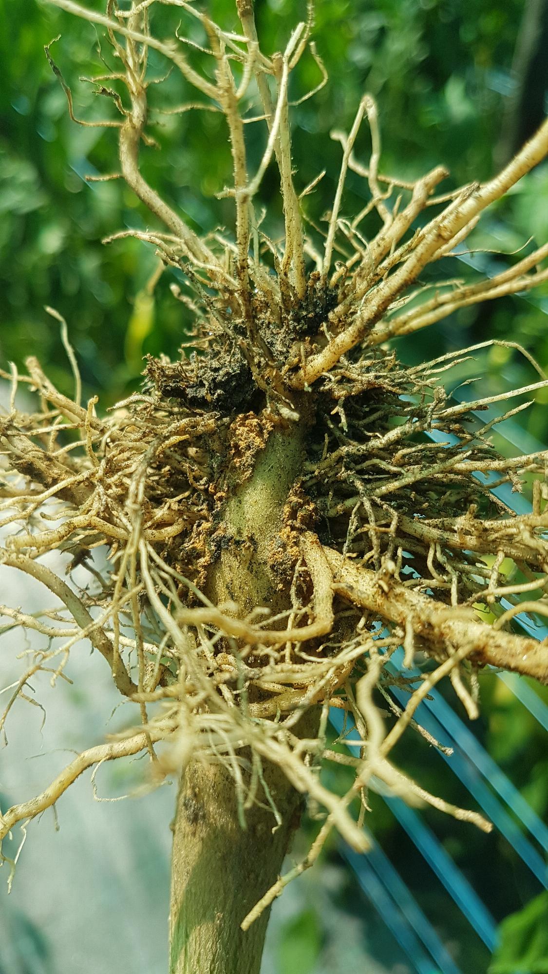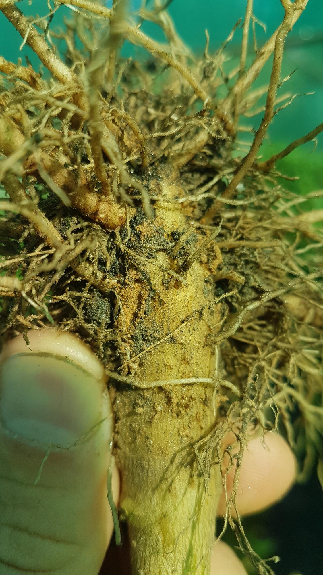 Viszont a gyökerek tövében látok valamilyen furcsa barna akármit, amiben nem vagyok biztos hogy annak ott kellene lennie.