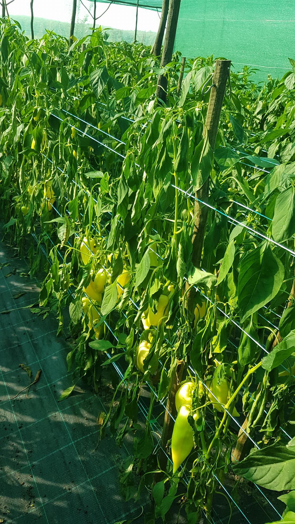 Paprika kb 40 négyzetméteres fóliasátorban van napi szinten öntözve.