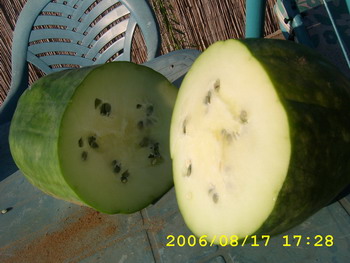 Lehet dinnye, de ez valami visszavadult változat. Nagyon hasonlít a téli tárolási sárgadinnyére. Milyen az íze?