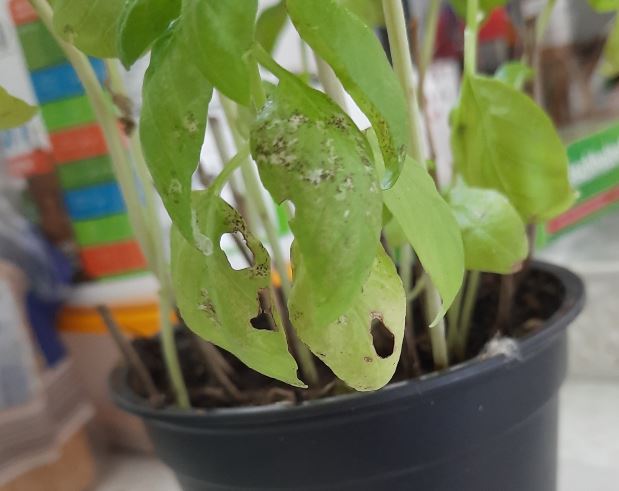 A gerbera-aknázó légy károsít a bazsaliokomon. A károsodott leveleket szedje le. Mospilanos beöntözés javasolt, de 14 napig ne fogyassza a bazsalikomot.