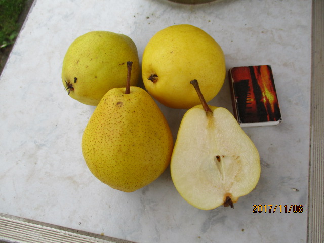 A mellékelt fénykép alapján valaki felismeri a körte fajtáját. Érési ideje október vége november eleje.. Eltartható január közepe vége. Betegségekkel szemben ellenáll. Íze enyhén fanyar, savanykás.