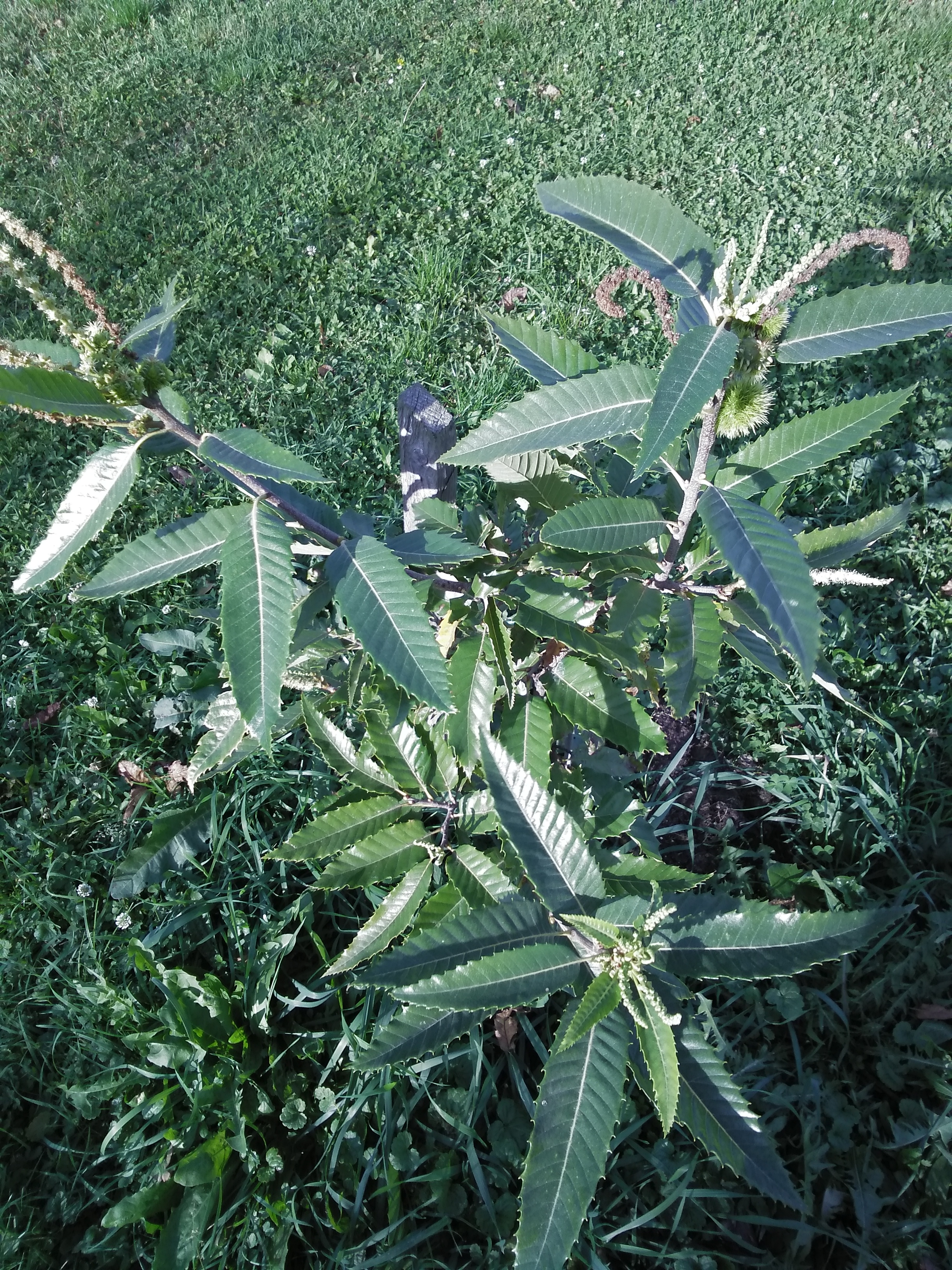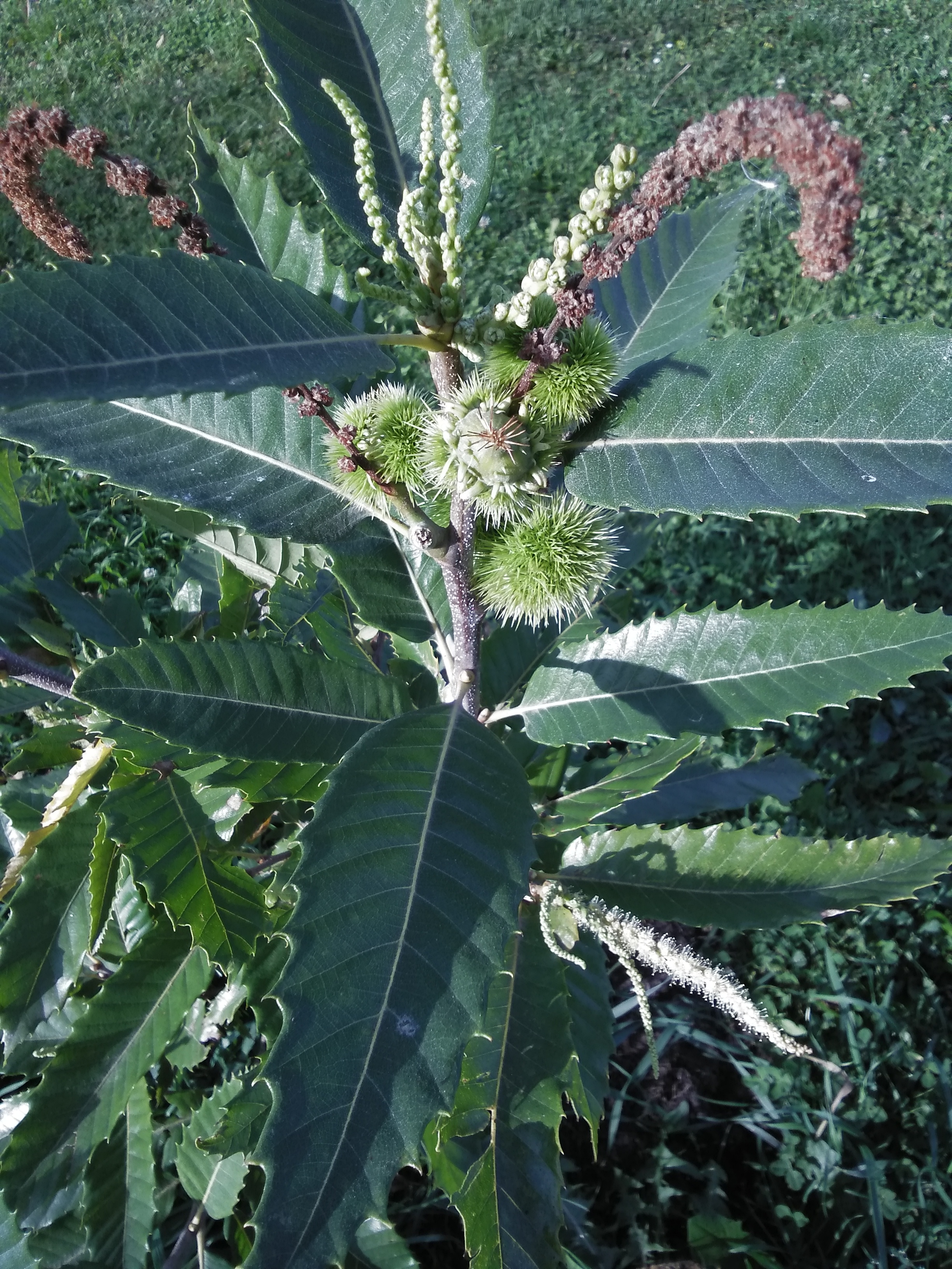 A kép 20.10.2019 -ben készült. Képek között kb. 1 év különbség. Nyár második felében kezdett erősen fejlődni és virágozni. Nyár folyamán többször is lomb trágyát kapott meg keserű sót. Ez a második virágzás. Közelben nincs más gesztenyefa. Az lehet, hogy önmagát beporozta?