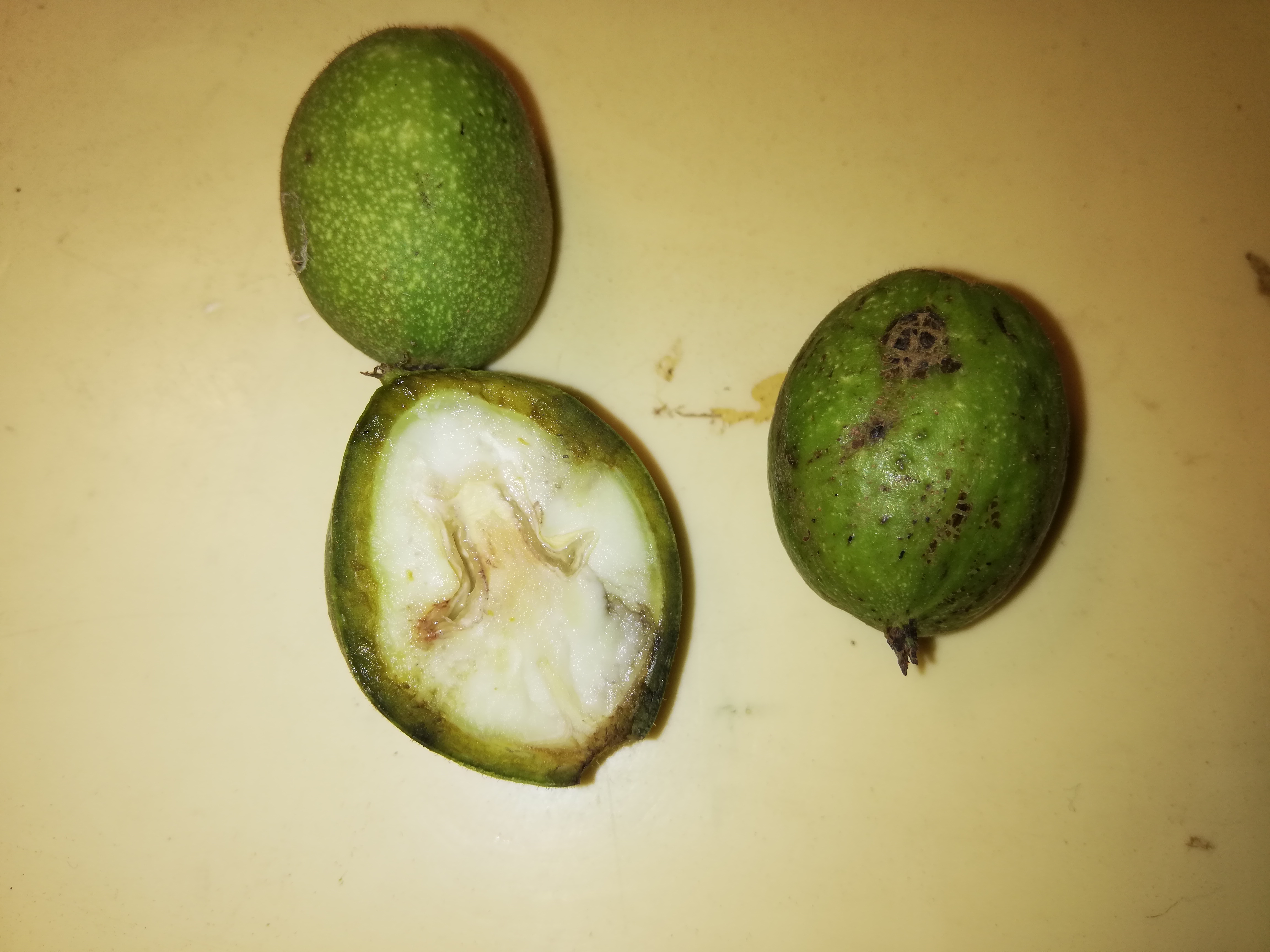 A képen látható dió termés hullik le a fáról elég nagy mennyiségben. Nem tudom eldönteni, hogy ez a természetes szaporulat szabályozás okozza, vagy valamilyen betegség?