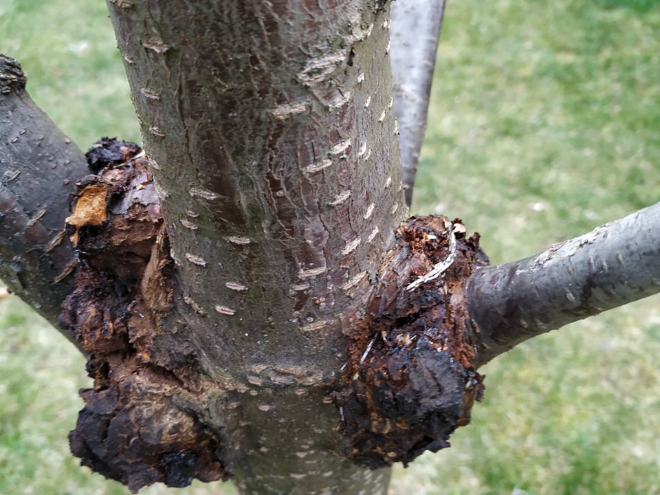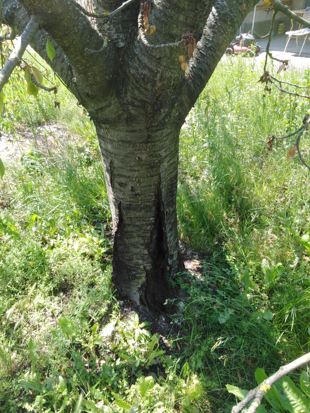 Nagyon jól termő cseresznyefa levele 50%-ban fakult, majd a törzse megrepedt. Levelei száradtak.