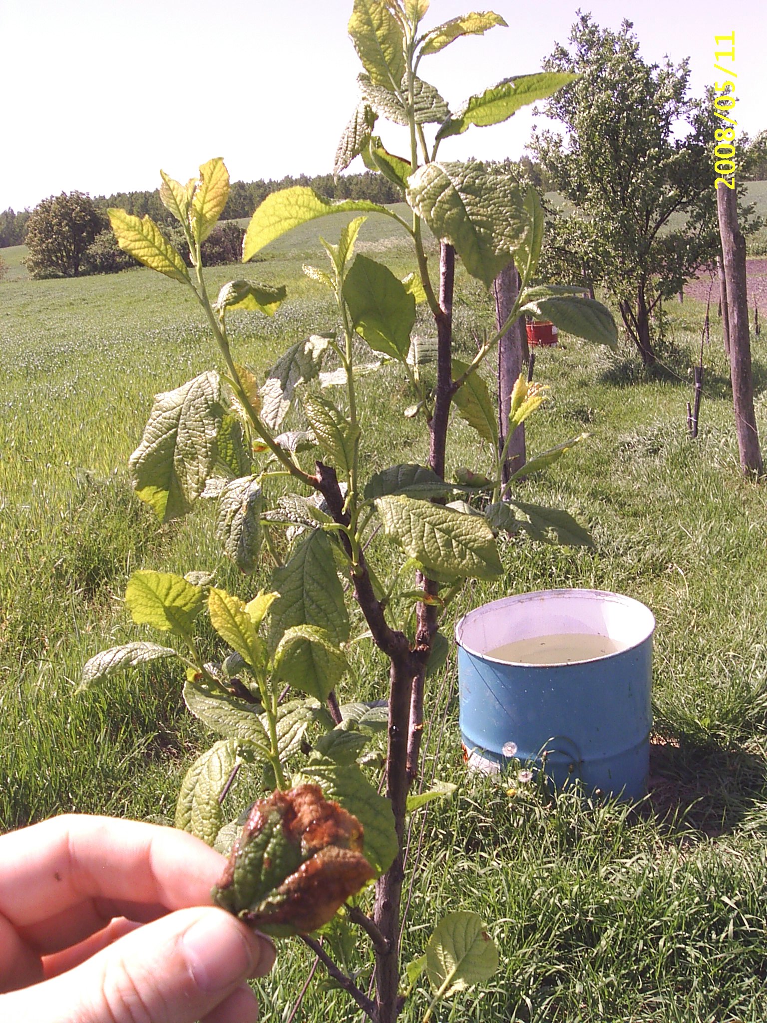 Itt egy sermina fajtáú szilva fa. De itt is tapasztaltam, hogy a levelek elszáradnak, olyan módon mint a hogy a kézben tartom. Nem tudom mi lehet az oka? Kezelve van lombtrágyával is.