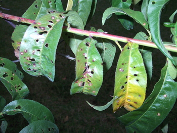 A nektarin fa levelei lehullottak, az új hajtások is lyukacsosak és sárgák, mi a teendő, mivel vagy miképp lehet orvosolni a problémát , egyáltalán mi okozza ezt ?