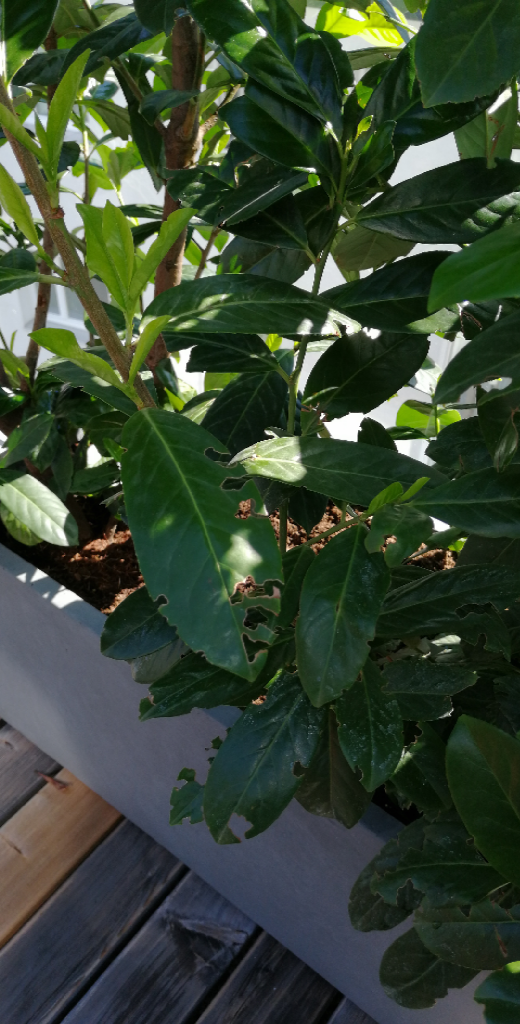 Ez a babérmegy egy 6. Emeleti tereszon van. Miközben szép sötétzöldek a levelek és újak is hatanak, a levelek szélei, néha a közepuk is lyukas. Mintha valami ragna oket, pedig valószinüleg nincs semmilyen rovar itt a tetön. Mi lehet ez? Mit tehetek? .