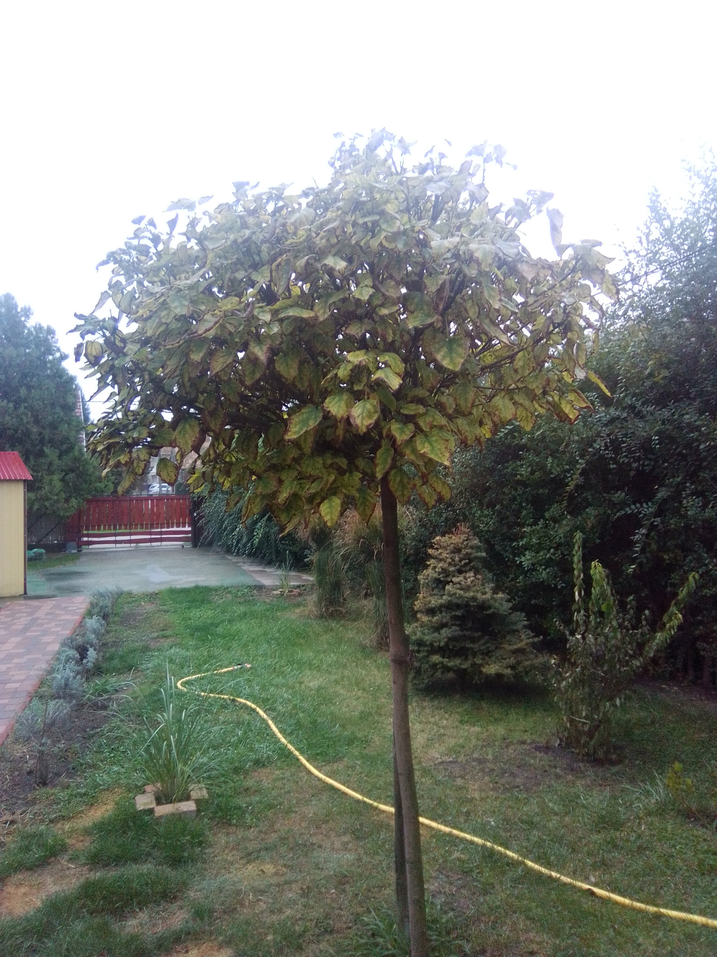 Legyen szíves megmondani mi lehet a baja a fának.2016-ban lett ültetve, 4 méterre tőle a párja egészséges.