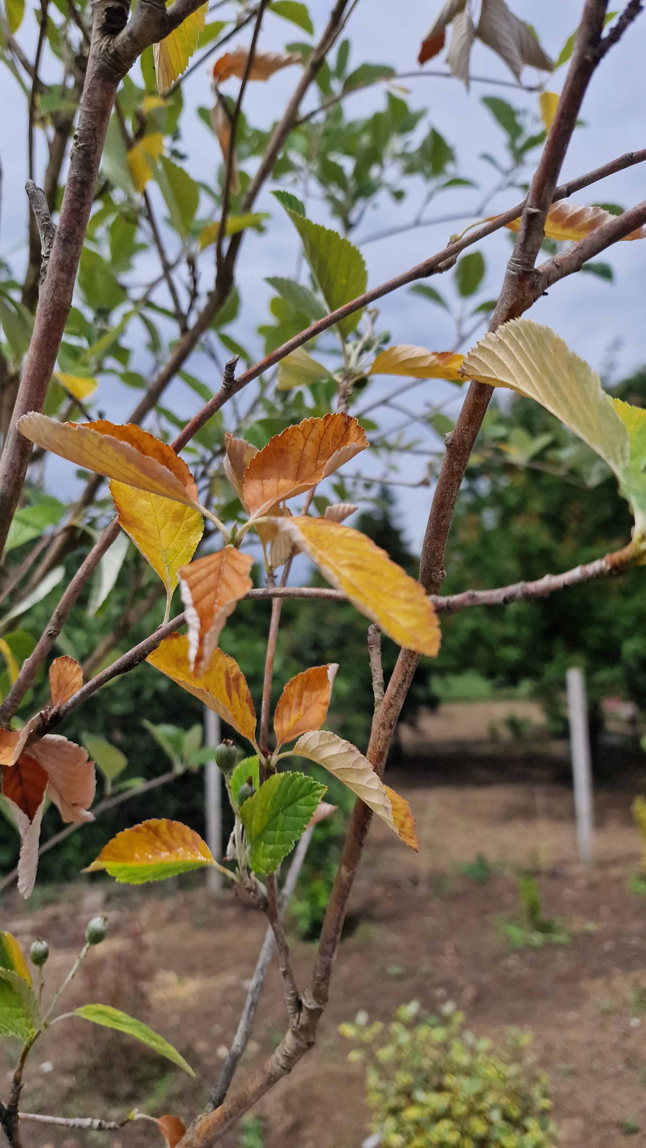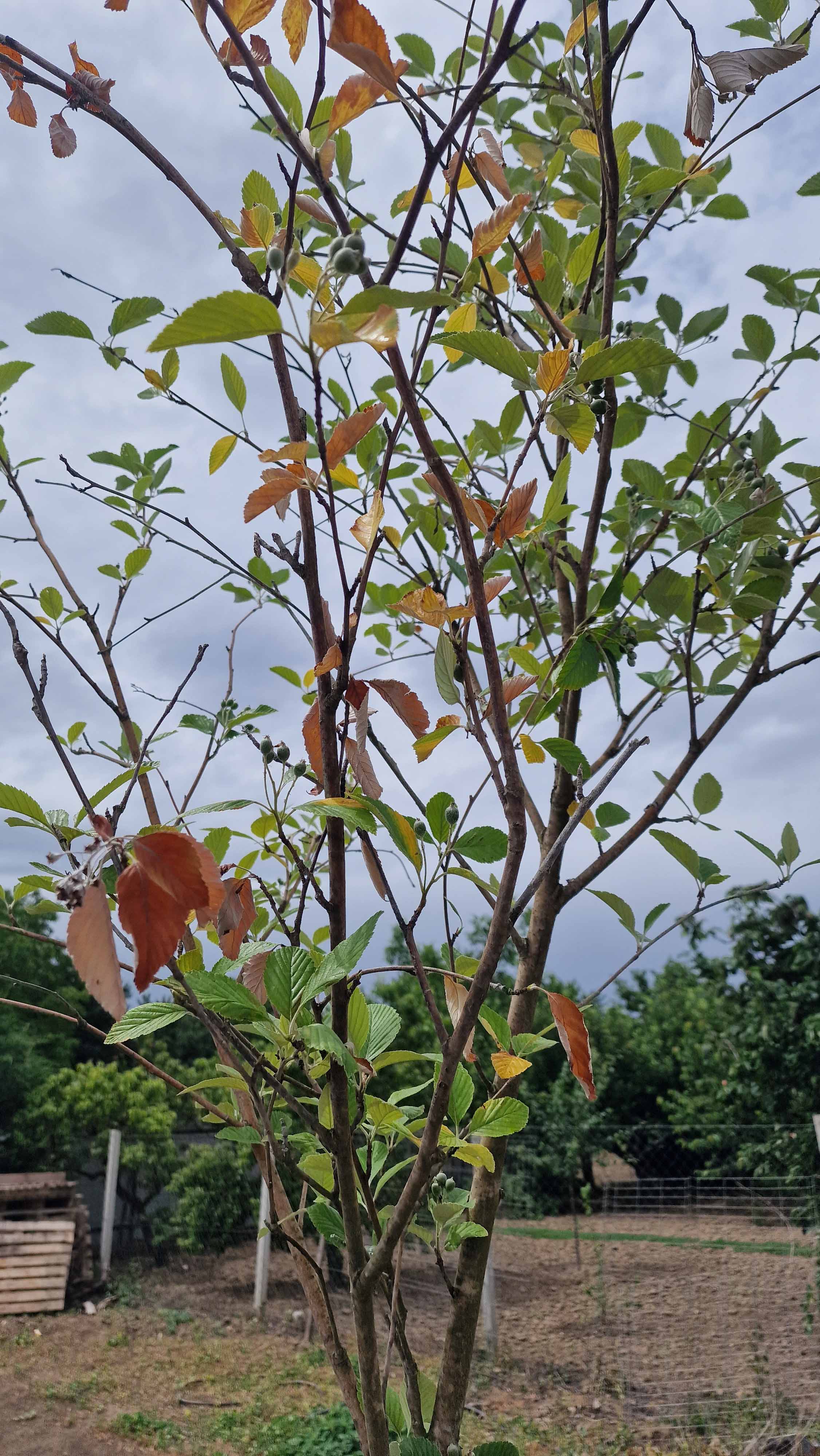 Az egyik a Vérszilva, lyukacsosak és sárga foltosak a levelei. A másik pedig Lisztes Berkenye, Neki az egyik oldalán a levelek kezdtek elsárgulni, de tapintásra semmi baja a leveleknek.