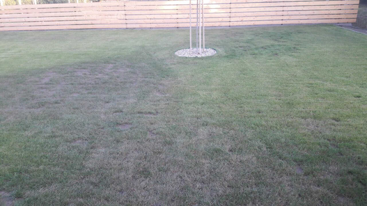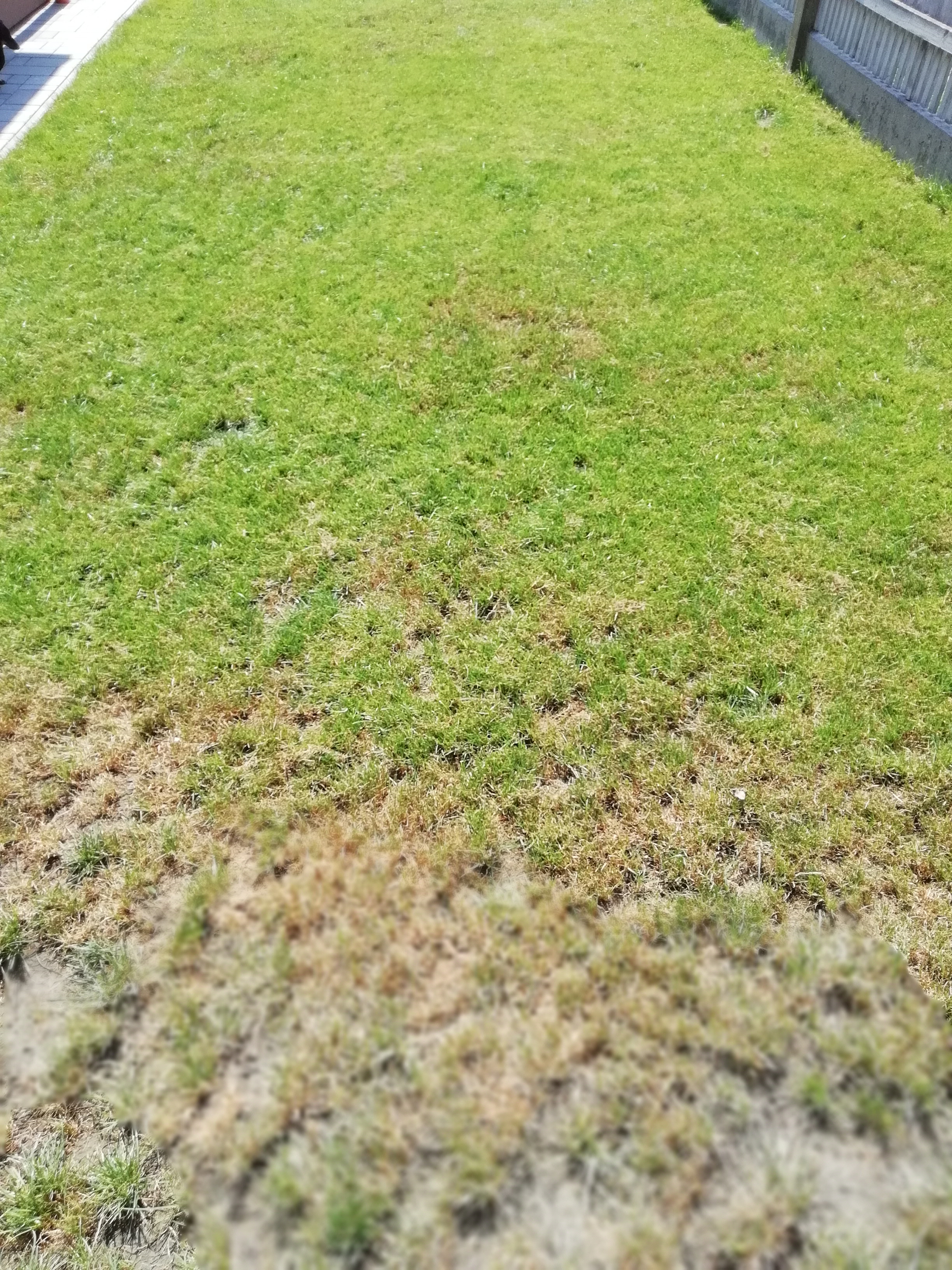 egy teljesen egészséges pázsit ( 6 cm-re nyírt, szerves trágyázott, öntöző rendszer 2 naponta hajnali órákban ) egyszer csak pár helyen el kezdett sárgulni foltokban. Közeli képet küldök. Nincs kutya, macska - 1 hete volt vendégünk kutyával. Mi okozhatja ezt, vizhiűny ( nem fedi az öntöző ), gomba, valami kárttevő a talajban?
